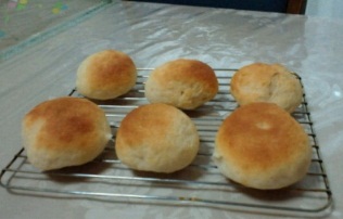 米粉パンはよ~く冷ましてからでないとめっさ切りにくいのですが、冷め切らないうちに母が台所に降りてきて出来たてのパンを食べようと付け合せを作りにかかったので、慌ててカットしちゃったのです。